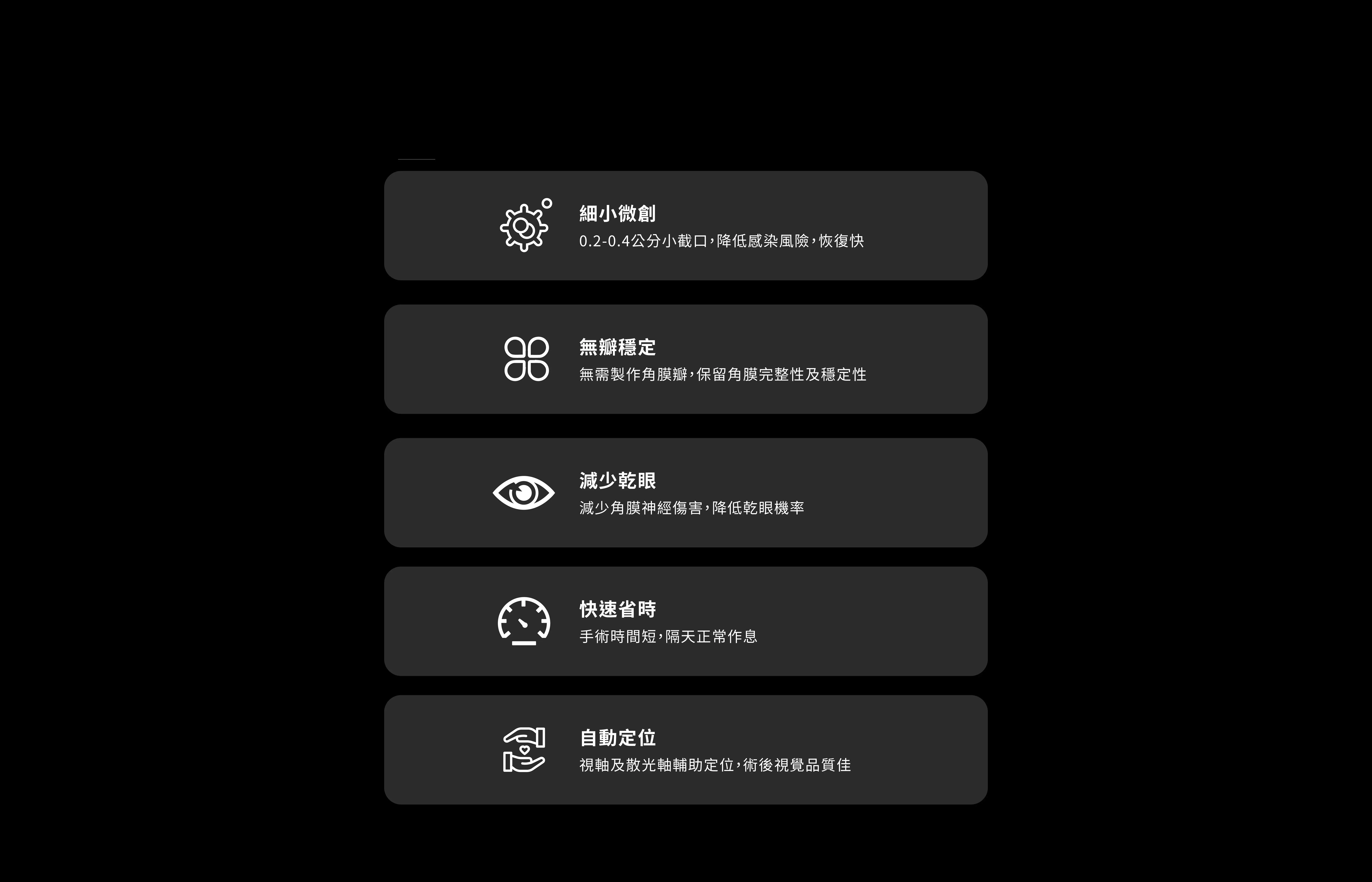 精準 定位視軸及散光自動導航虹膜辨識追蹤,自動散光定位導航,精準散光效果。